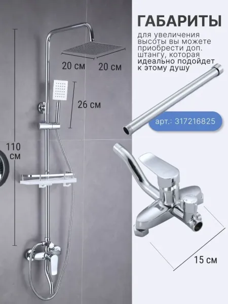 Душевой гарнитур содержит все необходимое для монтажа. Кроме того, наша душевая стойка хром имеет простой и быстрый монтаж, благодаря чему вы сможете установить ее самостоятельно без привлечения специалистов. Это позволит сэкономить время и деньги, а также получить удовольствие от процесса создания своего уютного уголка в ванной комнате.
