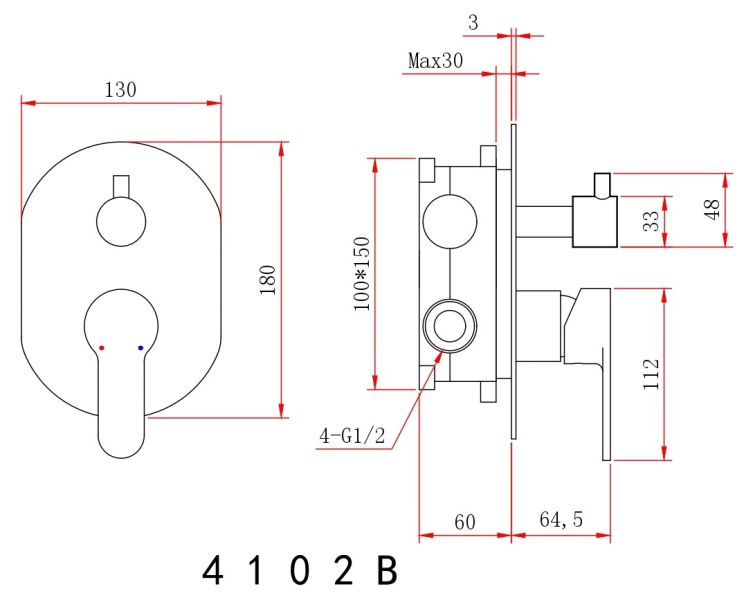 • Размер верхнего душа, см: