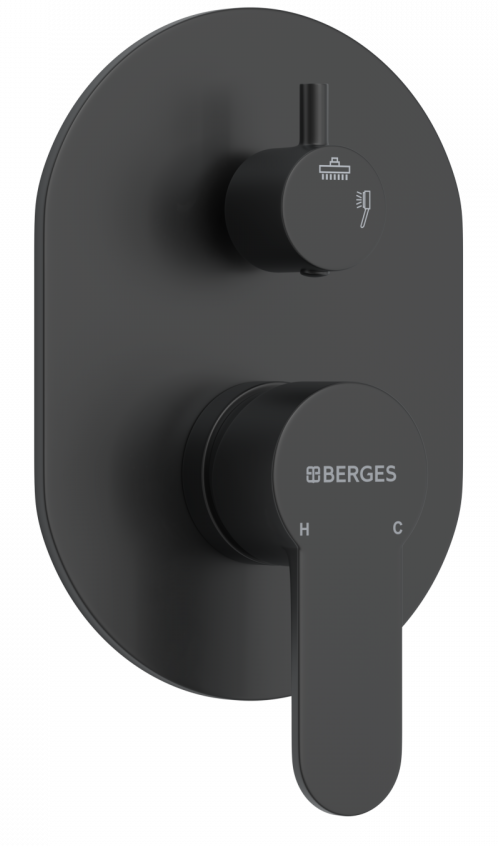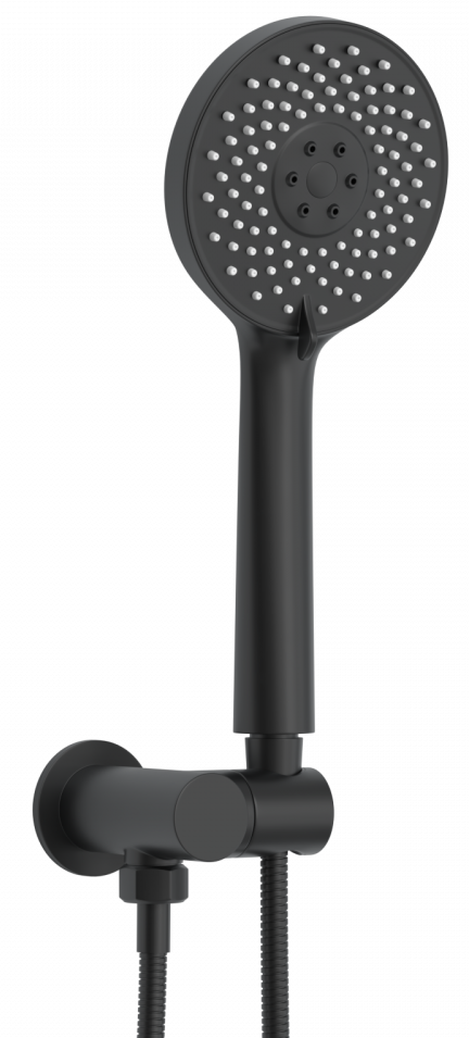 Душевой комплект BERGES NARDIS 3R BLACK - встраиваемый душевой комплект обладает трёхрежимной системой и состоит из верхней лейки - «тропического ливня», ручного душа, излива и смесителя. Лейка верхнего душа имеет инновационную систему самоочистки в виде гибких силиконовых вставок на форсунках душа, которые защищают изделие от известковых отложений. Изготовлены оба душа из ABS пластика. Комплект имеет матовое черное покрытие, которое выглядит безупречно на протяжении всего периода эксплуатации. Шланг выполнен из нержавеющей стали (внутри epdm), смеситель с латунным корпусом имеет керамический картридж с пропускной способностью 28 л/мин, все держатели и кронштейны сделаны из латуни и нержавеющей стали.Скрытый монтаж комплекта позволяет создавать красивое и эргономичное внутреннее пространство всего помещения.