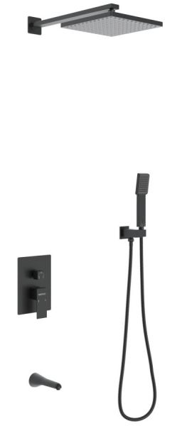 Душевой комплект BERGES VENTAS 3S BLACK - встраиваемый душевой комплект обладает трёхрежимной системой и состоит из верхней лейки - «тропического ливня», ручного душа, излива и смесителя.Лейка верхнего душа имеет инновационную систему самоочистки в виде гибких силиконовых вставок на форсунках душа, которые защищают изделие от известковых отложений. Верхний душ изготовлен из нержавеющей стали. Ручной душ – из ABS пластика. Оба душа имеют черное матовое покрытие, которое выглядит безупречно на протяжении всего периода эксплуатации.Шланг выполнен из нержавеющей стали (внутри epdm), смеситель с латунным корпусом имеет керамический картридж с пропускной способностью 28 л/мин, все держатели и кронштейны сделаны из латуни и нержавеющей стали.Скрытый монтаж комплекта позволяет создавать красивое и эргономичное внутреннее пространство всего помещения.