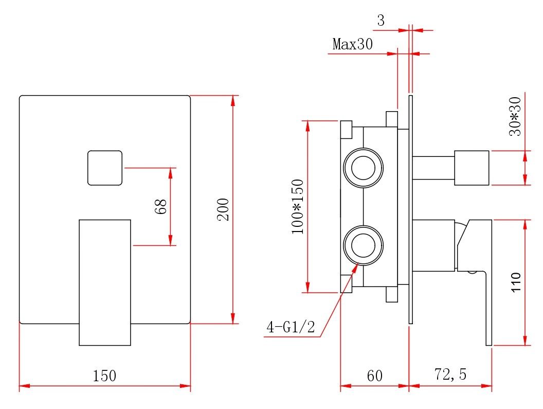 - Размер верхнего душа, см:25