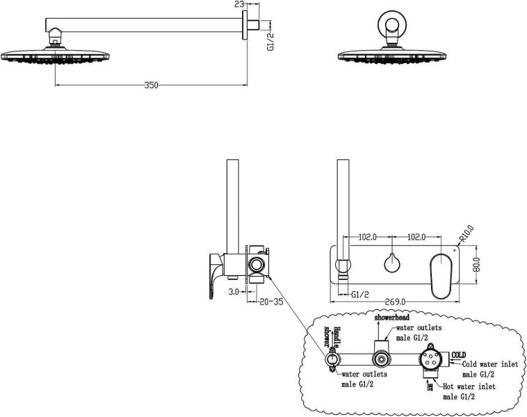 - Размер верхнего душа, см:20
