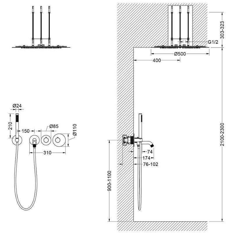 • Размер верхнего душа: Ø 500 мм