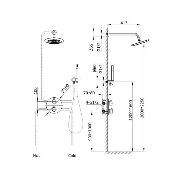 Верхний душ, ручной душ, смеситель со встраиваемой частью