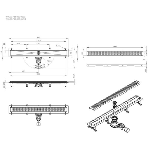 Душевой лоток AM.PM MasterFlow 80 W01SC-P11-080-01SB с решеткой Хром матовый Cut Gradient