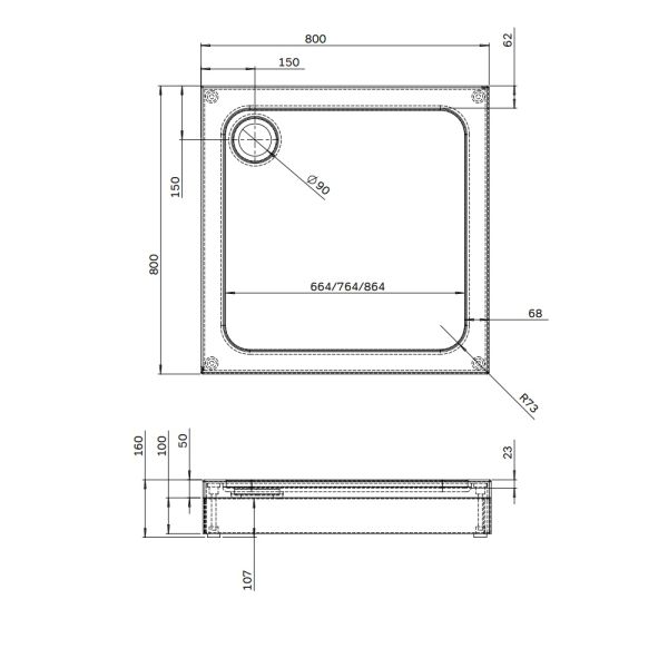 Душевой поддон Am.Pm Gem W90T-403-080W 80x80 см с сифоном