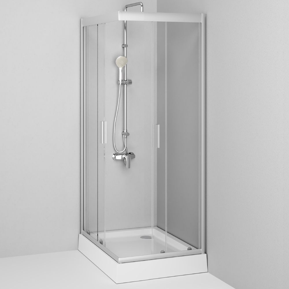 Душевой поддон Gem, несъемный экран, сифон диаметром 90 мм, надежный монтаж на регулируемых ножках.