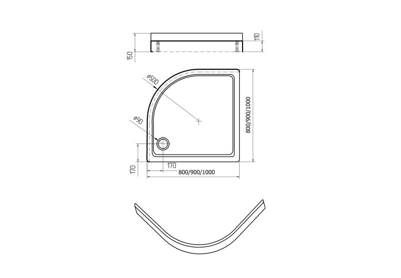 • Сифон для поддона приобретается отдельно