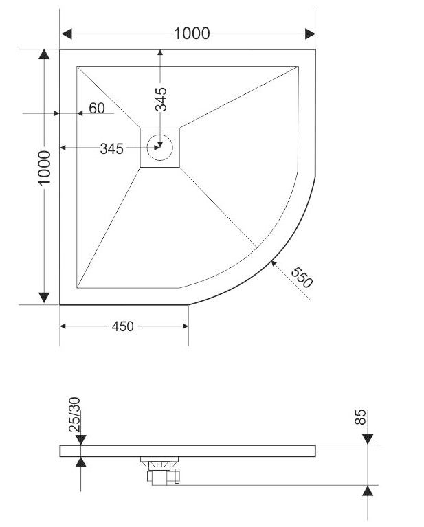 Душевые поддоны RGW ST с фактурой под сланцевый камень.Меняем представление о текстуре «искусственный камень»!В серии душевых поддонов Stone Tray появилась новинка привлекательной полукруглой формы в роскошном белом цвете и двух форматах. При необходимости мы можем выполнить обрезку изделия по индивидуальному размеру.Полукруг - идеальное решение для компактной ванной комнаты и позволит по максимум использовать полезное пространство, например, для мебели или бытовой техники.Визуальные акценты и форма поддона - новые, а качество прежнее: рельефная антискользящая поверхность в сочетании с низкой теплопроводностью материала создает ощущение нагретого солнцем камня под вашими ступнями и выводит обычный прием душа на новый уровень комфорта.Высокотехнологичный материал - 80% мраморной крошки плюс полиэфирные смолы - обеспечивает беспрецедентную устойчивость к механическим, химическим и другим видам повреждений, а также выдерживает долговременную весовую нагрузку до 300 кг.Добавьте сюда низкий уровень шума воды, когда вы принимаете душ для ещё большего удовольствия.Новый поддон — это самостоятельный аксессуар вашей душевой. Универсальный цвет, откликающийся на уровень освещения, и текстура “под камень” идеально сочетаются с интерьерами от смелых лофт и хайтек до романтичного прованса, а решетка из нержавеющей стали, защищающая слив, создаст безупречный аккомпанемент душевым системам, а таком же оттенке.Обратите внимание: фактические размеры с учетом заполнения швов могут меняться в пределах -8/+2 мм.По вашему желанию можем установить поддон на ножки: