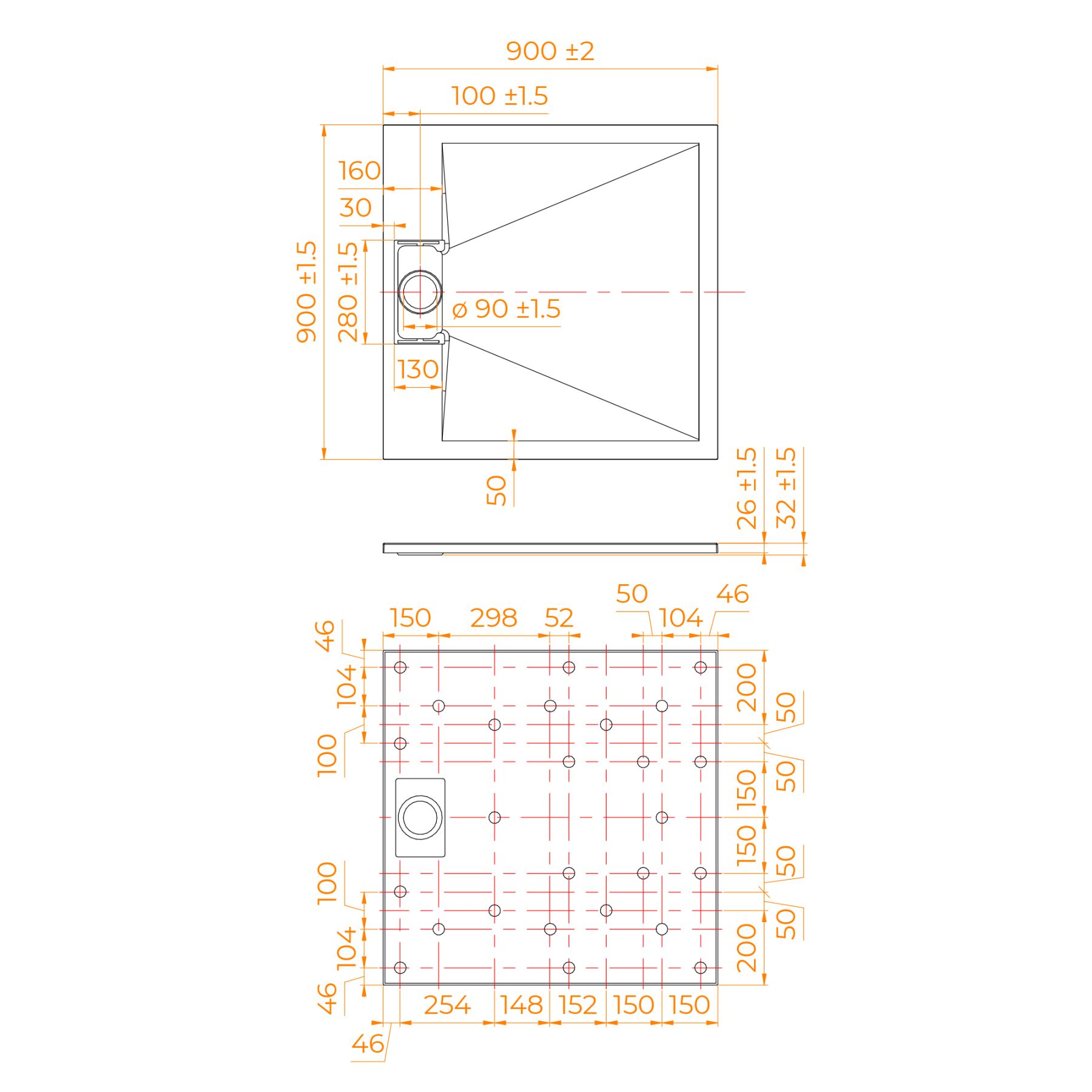 - Общая высота поддона: 26 мм.;