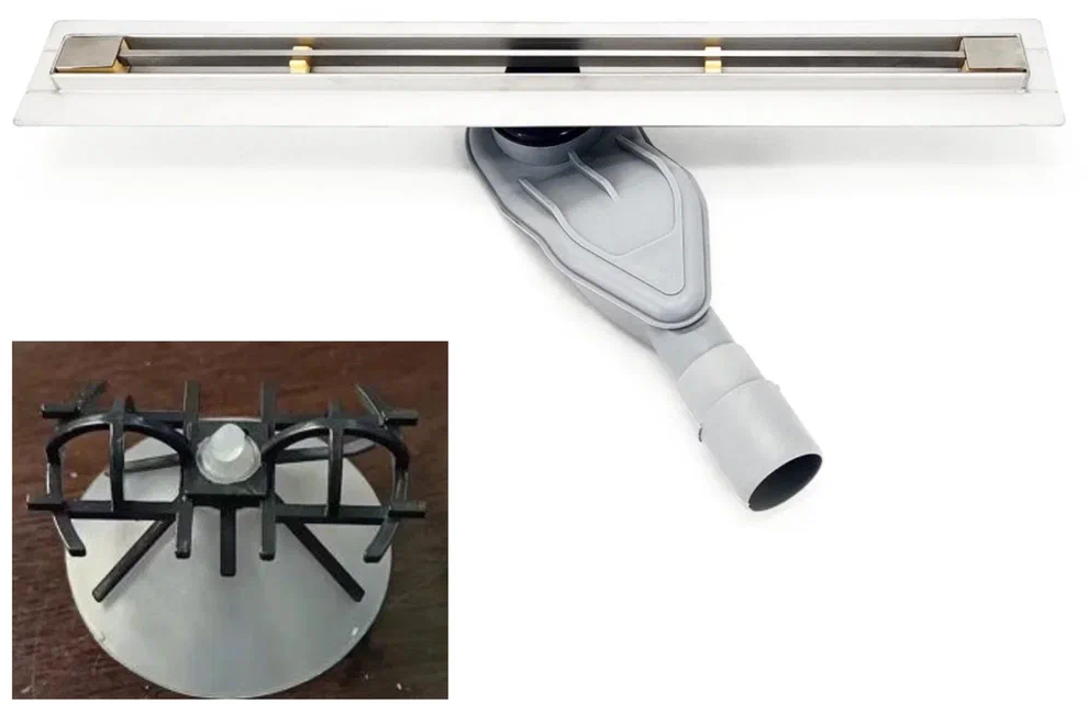 Линейные трапы ALMAes серии Delgado - С узкой щелевой решеткой, это стильное современное решение. Mаксимально удобен как при монтаже, так и при использовании, будет практичным решением как для душевой зоны безбарьерного типа, так и для душевой с поддоном. Сифон выполнен из прочного и морозостойкого полипропилена. Решетка и корпус из нержавеющей стали марки AISI304. Лоток имеет горизонтальный выход с выпускным отверстием диаметром 50мм. Отличительной чертой данной модели является сифон, который поворачивается на 360 градусов, что без проблем позволяет подключить его к канализации.