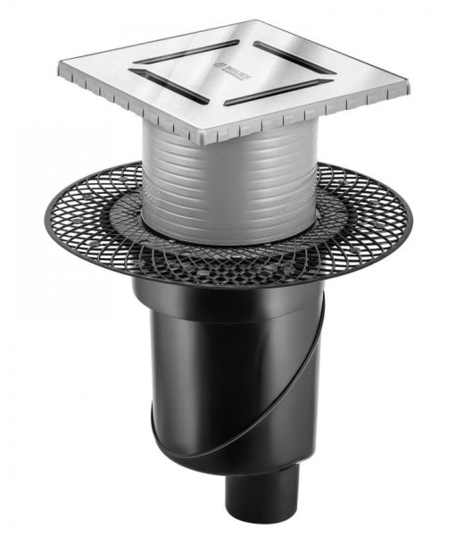 Решетка толщина 3мм, нержавеющая сталь AISI 304Горловина трапа, пластикФланец трапа с переходником, РРМонтажная заглушка, PPСамопромывной S-образный сифон PPВертикальный выпуск, пропускная способность 48л/мин, монтаж 360°Монтажный ключ, пластик