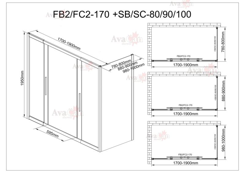 Душевой уголок AvaCan FC2 170-190 + SC 80 хром