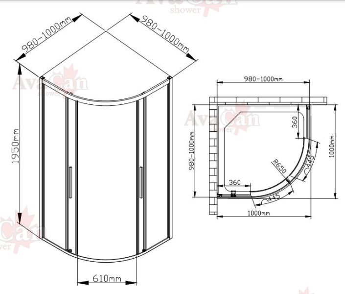 Душевой уголок AvaCan HC 100x100 см хром