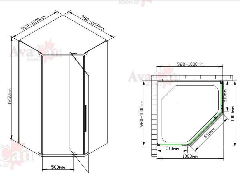 - Душевой уголок AvaCan PB 100 размер 980-1000-195