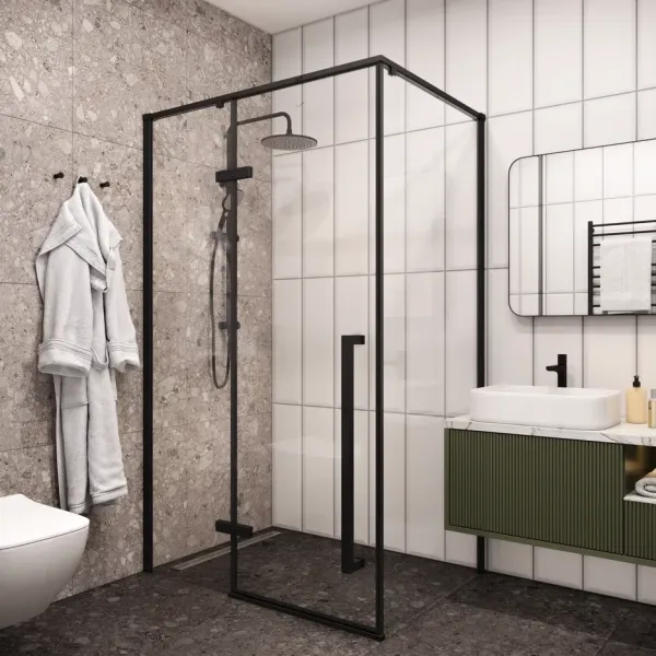 внутри достаточно просторно, поэтому принимать душ комфортно людям с разным телосложение; регулируемые профили позволяют плотно установить уголок к неровным стенам;