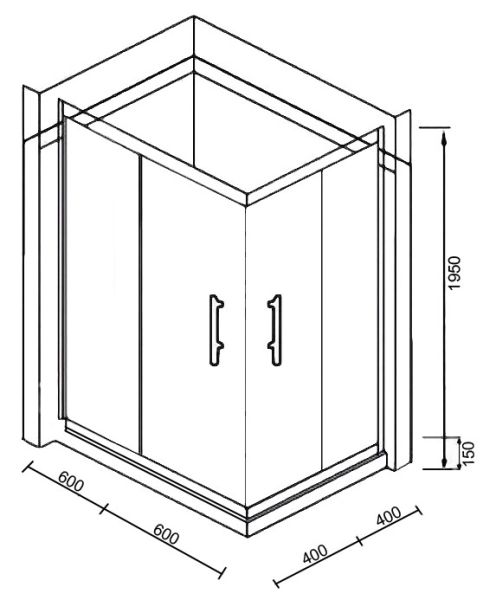 Уголок ZQ121G-L душевой PARLY с поддоном (120х80х195)Размер: 120x80x195 см