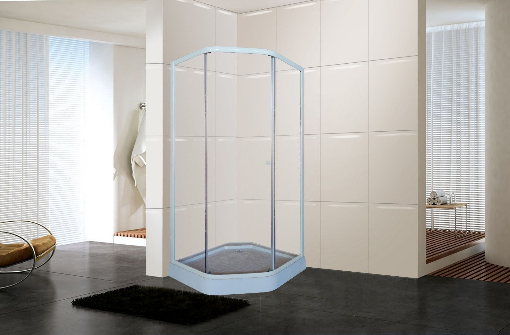 Белый профиль и прозрачное стекло придают уголку визуальную невесомость. Благодаря универсальному дизайну, уголок не будет перетягивать на себя внимание от общей идеи оформления ванной. За счет трапециевидной формы модель занимает мало места, но внутри комфортно принимать душ.Достоинства:Травмобезопасное закаленное стекло 4 мм: в случае битья, полотно рассыпается на гранулы, о которые невозможно порезаться.Низкий поддон (12 см) легко переступать. Рельефное дно предупреждает падения.Одинарные нажимные ролики обеспечивают плавный ход створок.Двери смыкаются плотно, вода наружу не просачивается.В комплекте – сифон.