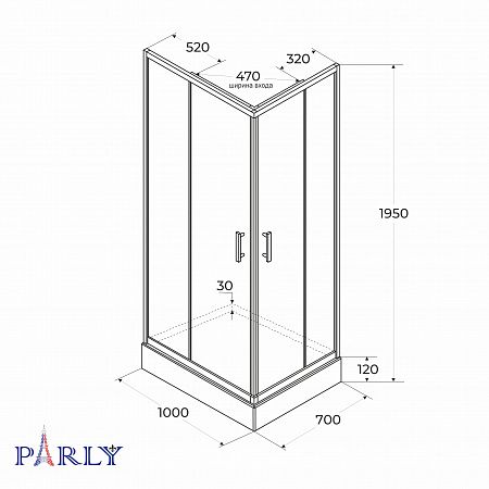 Душевой уголок с поддоном PARLY QZ71S N (70х100х195)
