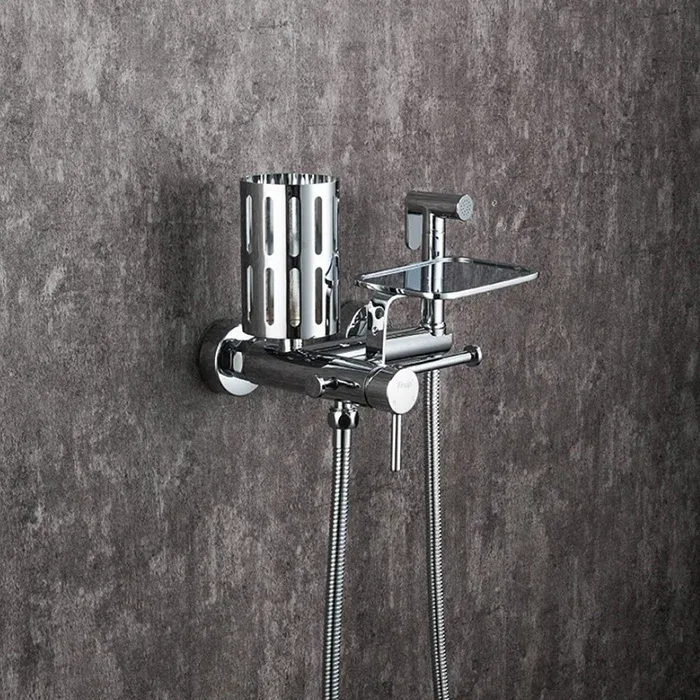Оснащение: душевой шланг, держатель для душа, полочка, держатель туалетной бумаги, держатель освежителя воздуха