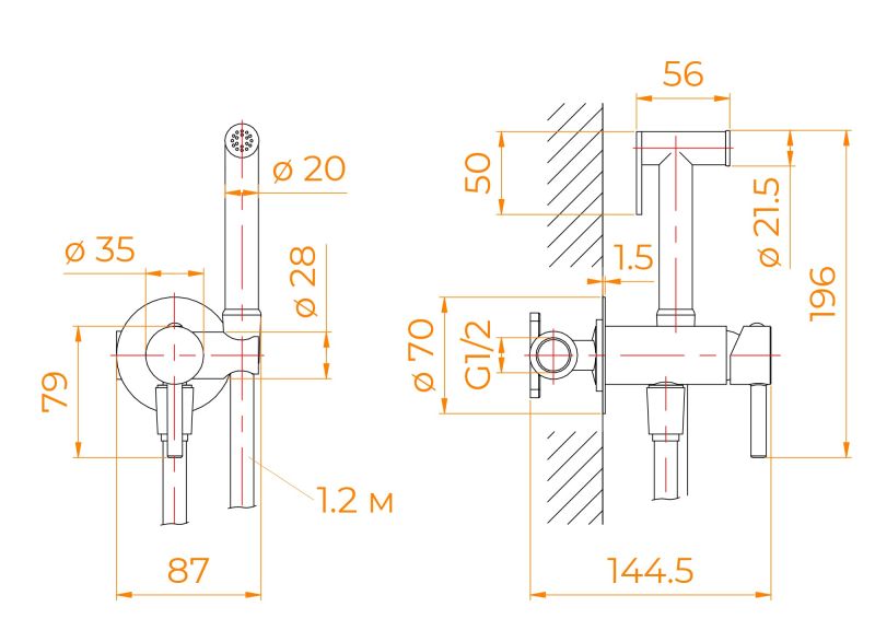 Гигиенический душ — это компактная альтернатива биде. Если у вас маленький туалет, где нет возможности установить еще одну сантехническую конструкцию, на выручку приходит данный аксессуар. Он выполнен в виде душевой лейки с клавишей (кнопкой) и шланга, которая фиксируется на смесителе. Смеситель состоит из высококачественной латуни встраивается в стену. Устанавливается рядом с унитазом и помогает поддерживать личную гигиену.