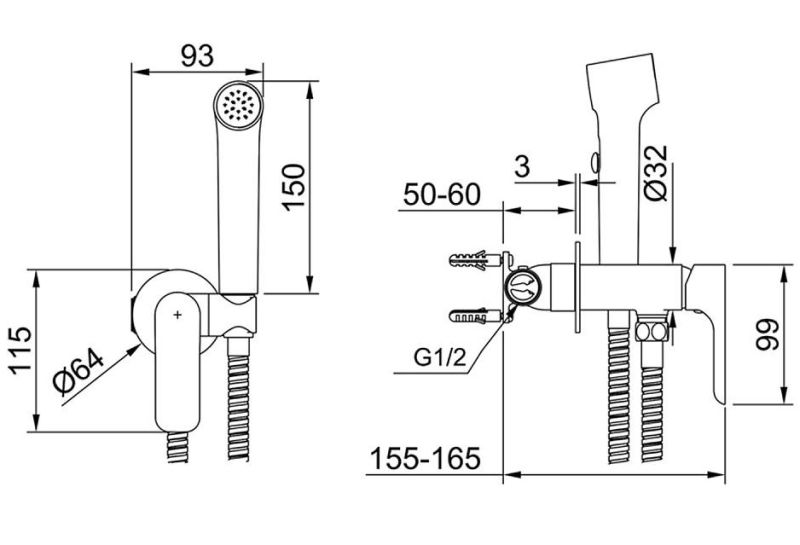 Гигиенический душ со смесителем Raglo R03.52.06 чёрный купить