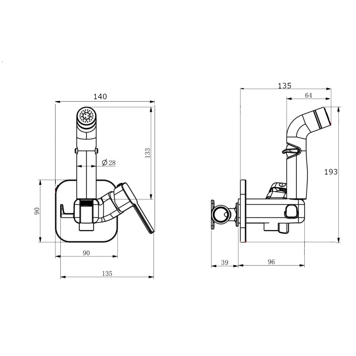 • Высота смесителя: