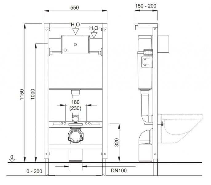 - Ширина инсталляции: 55 см