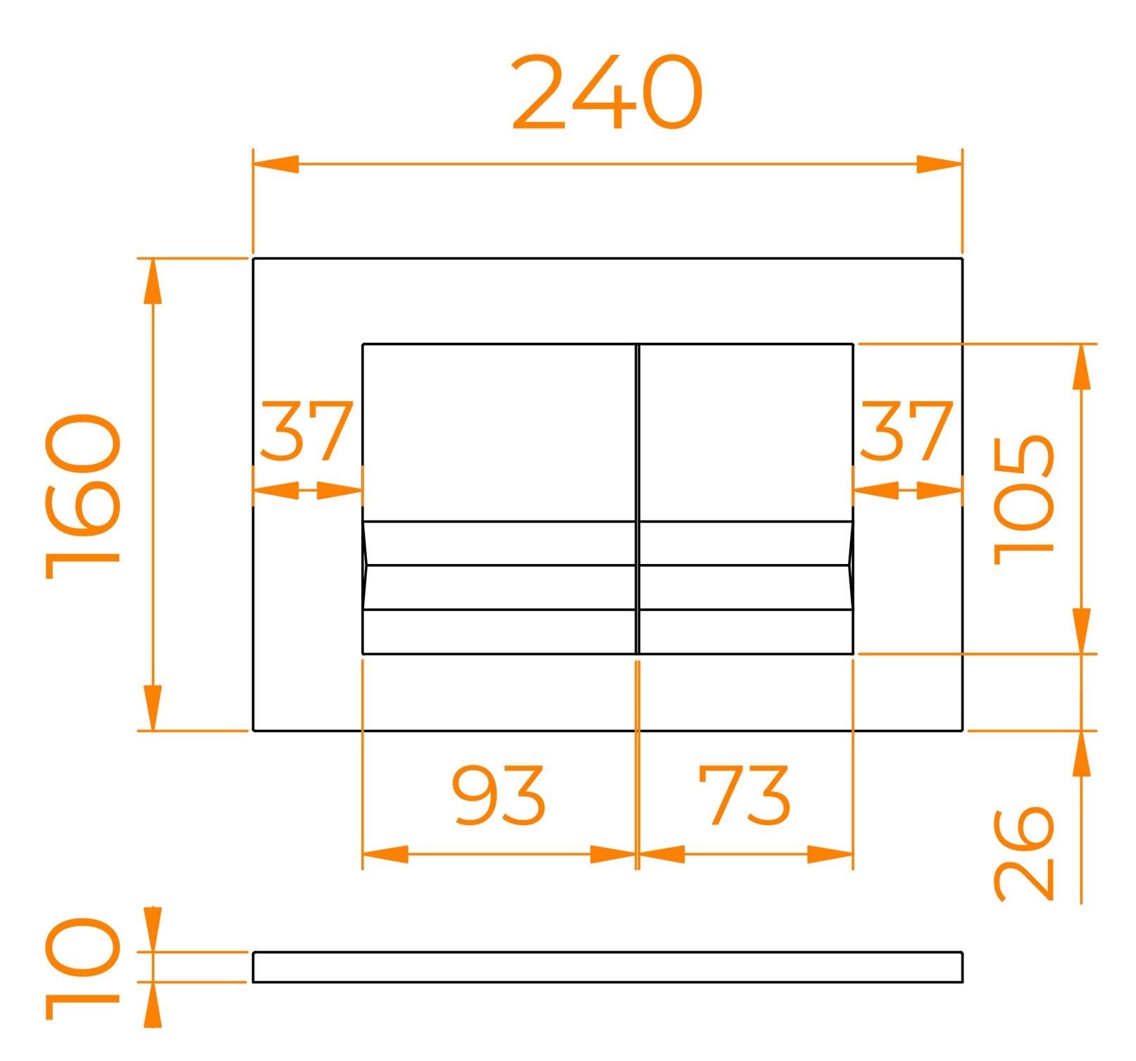 Размеры (ШхВхГ): 240х160х10 мм.