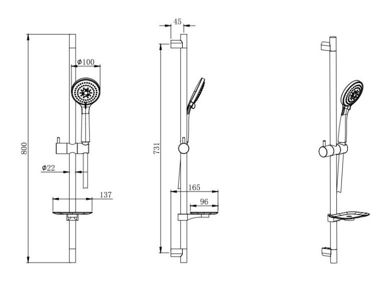 • Душевой гарнитур: стойка для душа с мыльницей, лейка, шланг