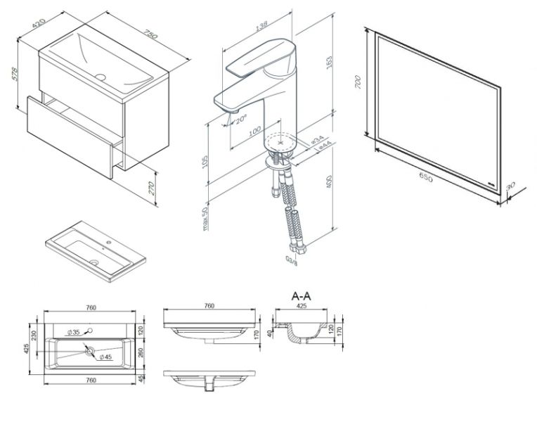 Размеры (ШхВхГ): 760х170х425 мм.