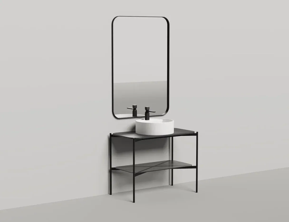 Консоль, предназначенная для установки накладных раковин из ассортимента Salini, изготовлена из металла, выполнена в благородном матовом чёрном цвете.