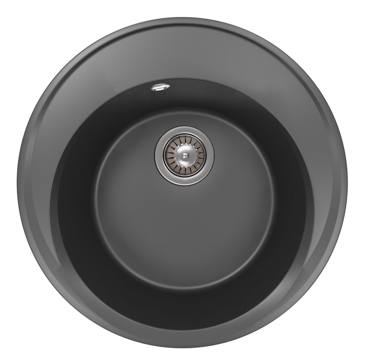 Круглая мойка с большой чашей для кухонного шкафа 45 смМатериал — кварцевый композитПредусмотрены дополнительные отверстия для установки аксессуаровГабариты нетто ( ДхШхВ) 510х510х217 мм