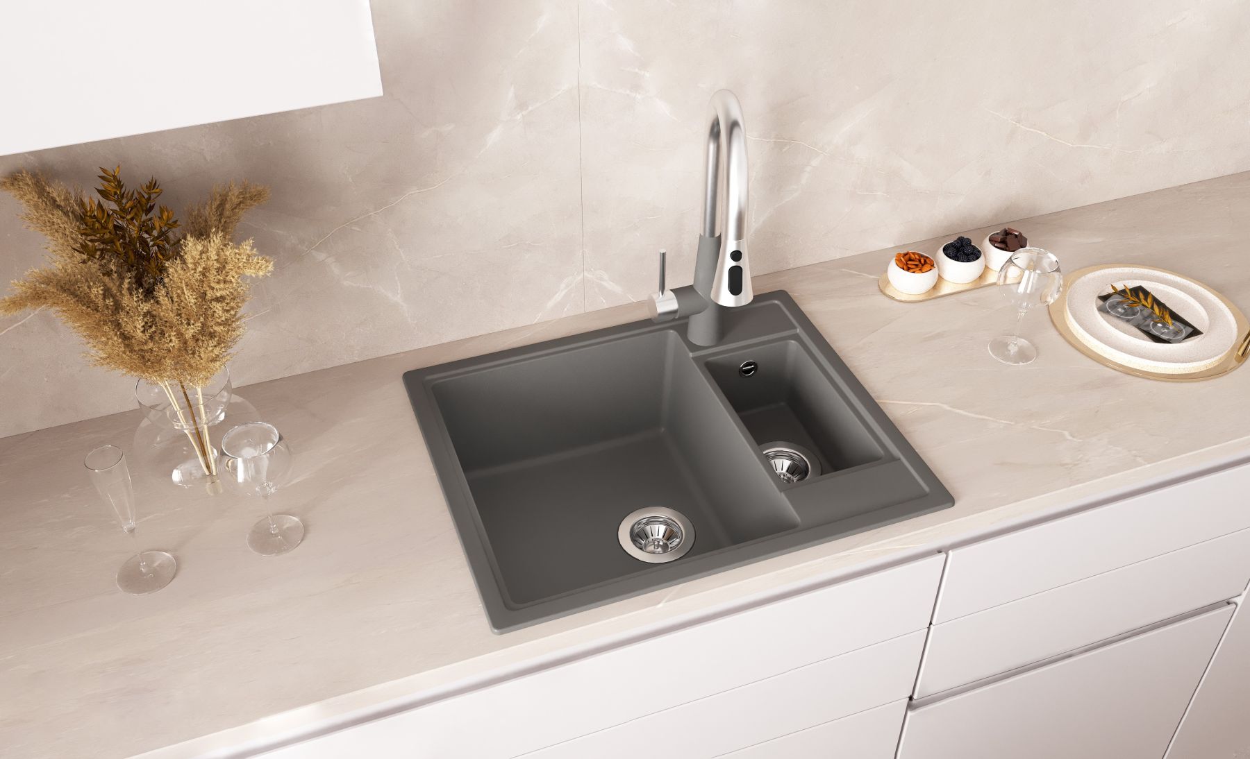 - Современная мойка с малой чашей;