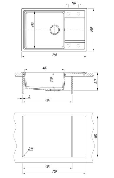 Мойка Липси 780 XL - это большая чаша (48 x 44 сантиметра) с увеличенным крылом, подойдет для любого кухонного гарнитура.