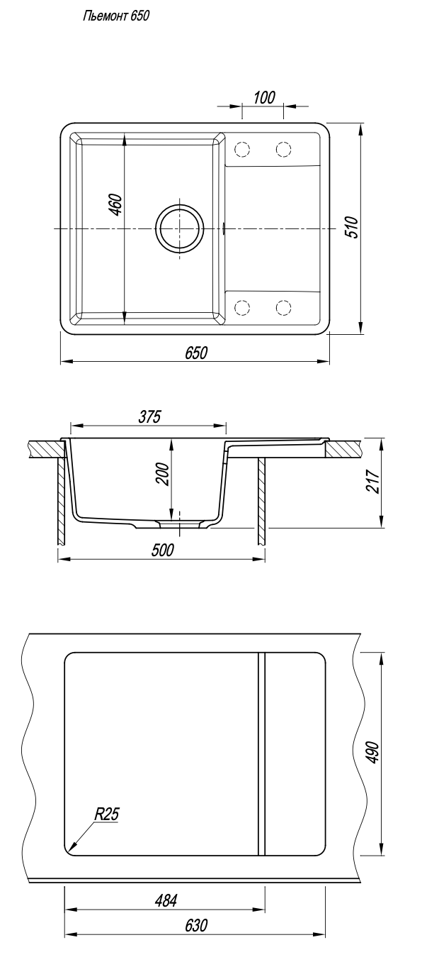 • Отверстия под смеситель: