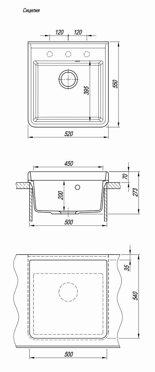 - Отверстия под смеситель:нет
