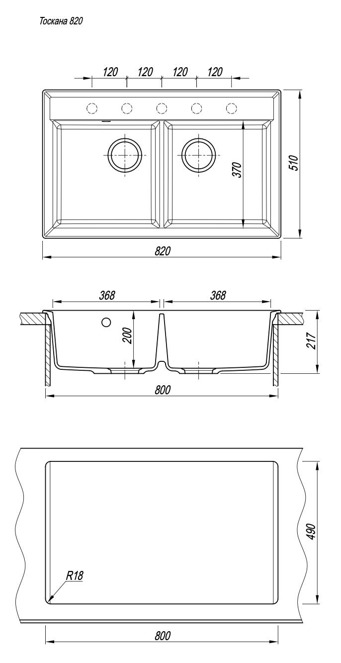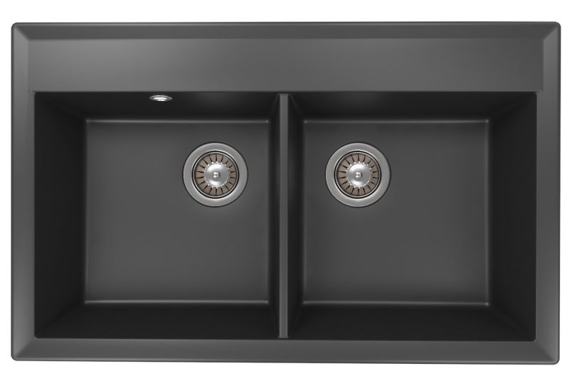 - Прямоугольная мойка с двумя большими чашами для кухонного шкафа 80 см
