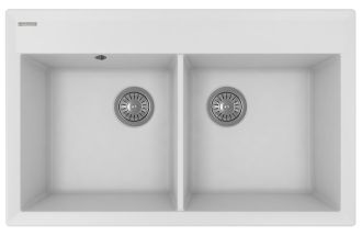• Прямоугольная мойка с двумя большими чашами для кухонного шкафа 80 см