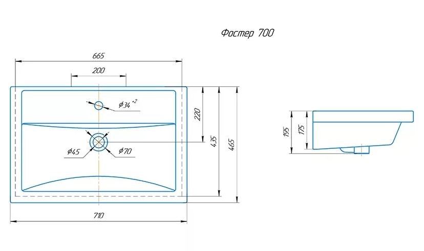 Мебельная раковина Grossman Фостер 70 см
