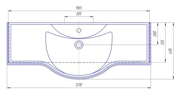 Полукруглая форма раковины оптимальных размеров: шириной 121 см, глубиной 49.5 см, высотой 20 см, способствует комфорту использования и монтажа. Ретро стиль, в котором выполнена раковина передается во всех элементах данной модели. Материалом, из которого произведена раковина является фаянс, данный материал отличается максимально гладкой поверхностью, и абсолютной гигиениченостью. Наличие встроенного перелива предотвратит переполнение раковины и возникновение более серьезных последствий.
