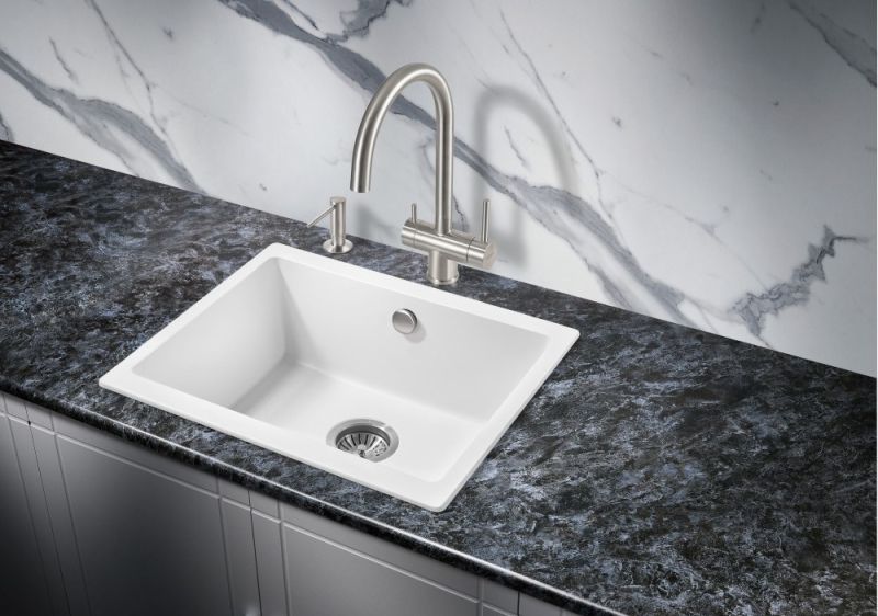 Прямоугольная мойка для кухни MILACIO Leon 55 Cuarzo (MC.77082) из искусственного камня, выполненная в белом матовом цвете, впишется в любой дизайн и станет ярким украшением вашей кухни.