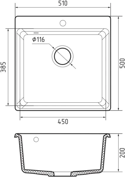 Размер чаши: 450 * 385 * 200 мм