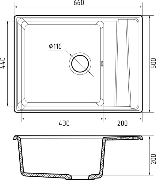 Мойка кухонная GranFest LEVEL LV-660L иней
