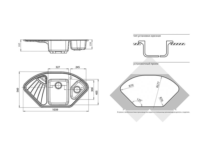 Мойка кухонная GranFest Топаз Corner C-1040 E топ купить