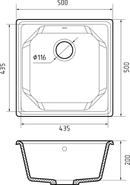 Размер чаши: 435 * 435 * 200 мм