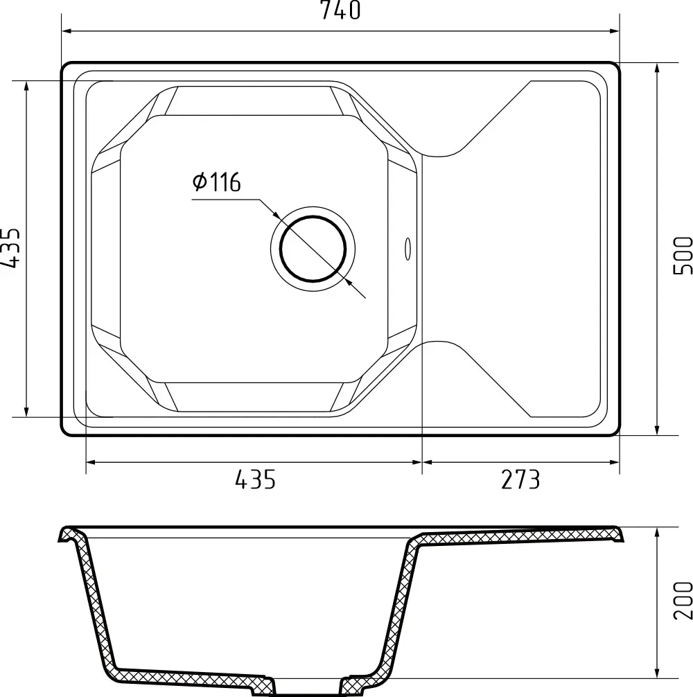Общий размер: 740 * 500 мм