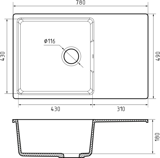Общий размер: 780 * 490 мм