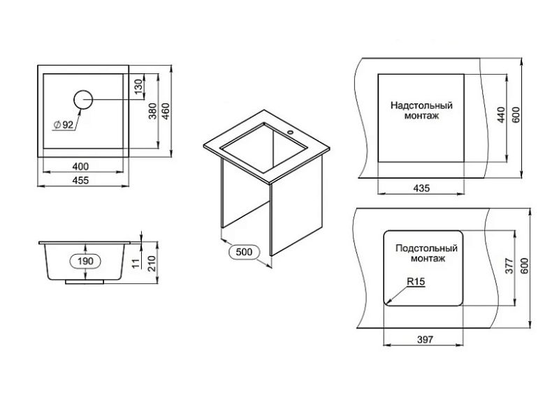 Мойка кухонная Granula 4451, ЧЁРНЫЙ