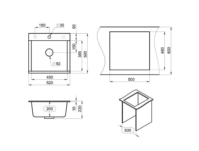 - Отверстия под смеситель:1